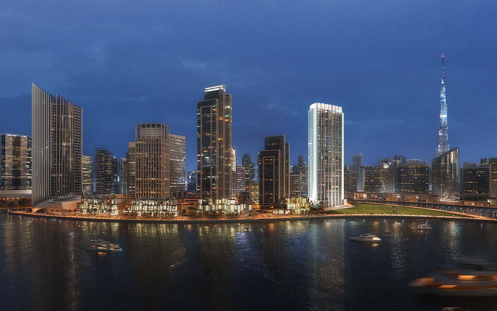 A 49-storey waterfront skyscraper positioned along the Dubai Water Canal in the heart of Business Bay. Designed by Killa Design — the award-winning architectural firm behind the Museum of the Future, one of the most celebrated buildings in the world. Offering world class studios, one bedroom, and two bedroom units with panoramic views of the Burj Khalifa, Downtown Dubai, and the Dubai Canal from every floor. The apartments range from 410 sq.ft. to 1,061 sq.ft., providing flexibility and choice. The tower features modern designs catering to the widest array of resident preferences. And sitting at the centre of a masterplan community whose 66,000 sq ft Community Mall, waterfront promenade, parks, pools, and activated public realm transform Business Bay’s most exciting canal-side address into a place that earns the word community — not just the designation.