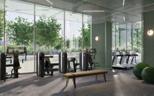 The Fitness and Wellness facilities include a fully equipped gym, providing residents with access to premium exercise equipment and spaces for a health-conscious lifestyle. Additionally, the development features a running track, allowing residents to enjoy outdoor exercise and leisure activities as part of a comprehensive suite of recreational amenities.